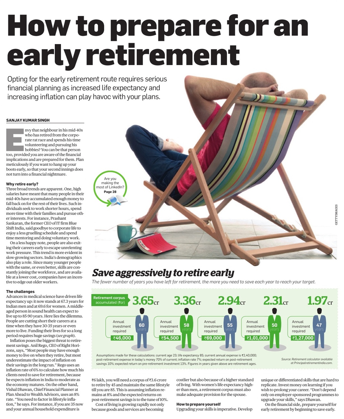 An individual can also invest in a debt of a hybrid mutual funds based on one’s risk appetite. Then for regular income, set up an SWP or systematic withdrawal plan which pays out a specific sum at regular intervals to the investor. If you have risk appetite and ample liquidity, you can also invest a portion in equity funds which will help beat inflation in the long run. Post retirement period need not be a short period. You must prepare for what if you outlive your expected life expectancy.