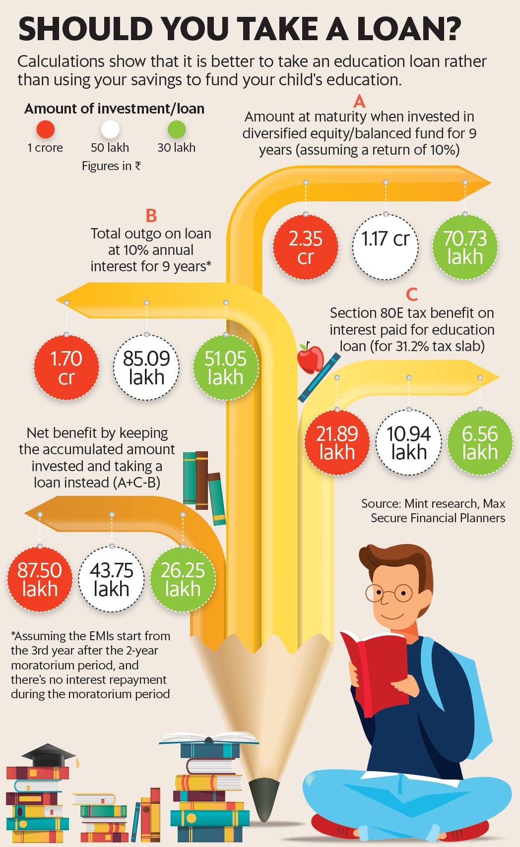 But if someone has already accumulated the required amount, why should another repayment burden be taken on? The answer lies in two things, Praharaj said. “A cost benefit analysis suggests that taking an education loan and keeping the accumulated amount invested works in your favour. Moreover, it also helps in developing a sense of responsibility in the student. The realisation that a repayment has to be done by them keeps them focussed,” he said.